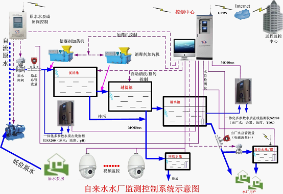 Ø 远程控制原水泵或远水闸阀(自流);实现原水泵或远水闸阀(自流)的自动控制;