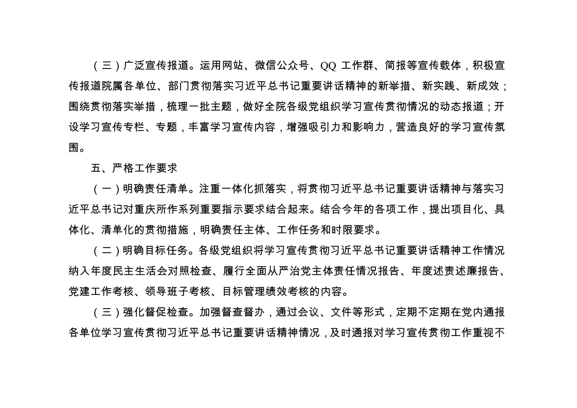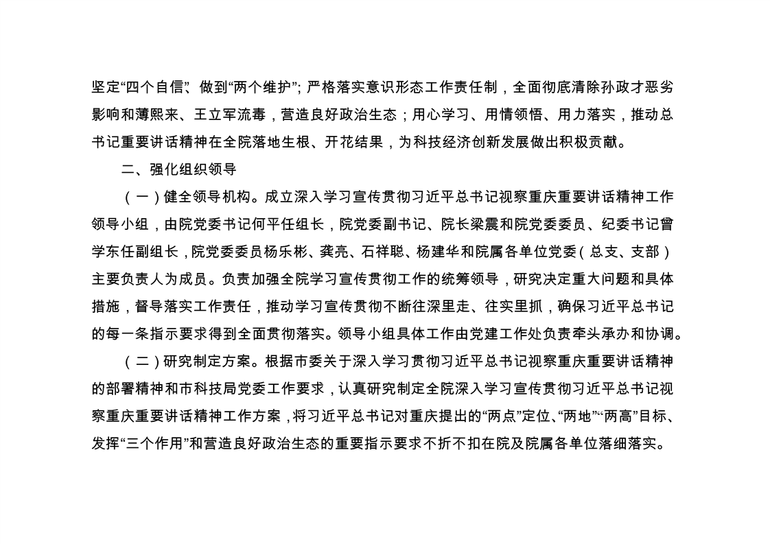 学习资料-重科院《深入学习宣传贯彻习近平总书记视察重庆重要讲话精神工作方案》
