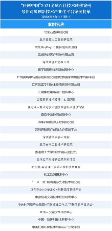 中匈技术转移中心入选“科创中国”2021全球百佳技术转移案例