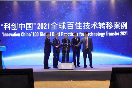 2021年9月6日,2021中国国际技术贸易论坛在国家会议中心召开。会议期间,由中国国际科技研讨中心、中国科协新技术开发中心、国家科技评估中心、中国科技评估与成果管理研究会共同主办的《“科创中国”2021全球百佳技术转移案例》正式发布。院高创中心(中匈技术转移中心)在海内外250个具有代表性的技术转移相关案例中脱颖而出,入选“最佳跨境创新技术产业化平台案例”。中国科协原党组副书记、副主席齐让,科技部国家科技评估中心主任聂飙,中国科协新技术开发中心副主任秦久怡,中国国际科技研讨中心副主任贾子文和科技部国际合作司原司长靳晓明等共同揭晓榜单。